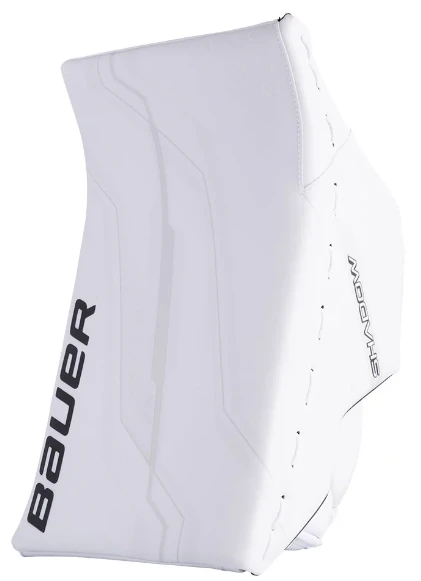 The Bauer Supreme Shadow Goalie Blocker combines advanced technology and premium materials to give goalies the ultimate protection and performance on the ice. The composite blocker boards allow for high-velocity puck clearing, while the enlarged and reinforced side plate offers improved finger protection without compromising stick playability. With defense cloud tech foam, your fingers are mobile but reinforced, ensuring you can confidently defend your goal.Â